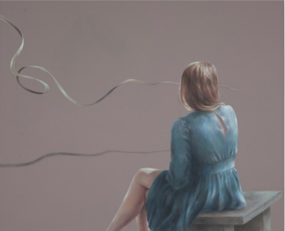 Illusionen – Träume. Treffender kann der erste Eindruck einer Ausstellung kaum sein. Die großformatigen Werke in der Galerie im Altbremer Haus ziehen den Blick an, spielen mit Illusionen und lassen in Träume abtauchen. Die Besucher der Ausstellung lassen sich auf eine Bildwelt ein, die der Phantasie und eigenen Interpretationen Raum lässt. Behutsam beobachtend nähert sich Sybille Hentschel ihren Figuren, die in eigenen Betrachtungen und Gedanken versunken sind. Mit abgewandtem Gesicht dargestellt, strahlen sie oft aber auch eine leichte Verträumtheit aus, die sich in Körperhaltung und Körpersprache wiederfindet. Für die Künstlerin ist wichtig: „Es entsteht eine gewisse Abstraktion. Gesichter werden nicht gezeigt, es werden damit Stimmungen neutralisiert.“ In der Genauigkeit der Haltungen und Proportionen zeigt sich künstlerische Meisterschaft. Das technische Können wird ganz in den Dienst des Aufbaus einer Atmosphäre, einer Stimmung gestellt, die bei aller Präsenz immer ein Stück Geheimnis und Rätselhaftigkeit behält. In den Werken von Sybille Hentschel findet sich das Spiel von Licht und Schatten mit großer Tiefenwirkung in der Eleganz von Faltenwürfen und Rüschungen wieder. Der Raum um die dargestellten Personen ist komplett ausgeblendet, zusätzliche Elemente können jedoch Teil einer erdachten Geschichte sein. Das Bild wird Ereignis mit Dingen, die uns vertraut vorkommen und doch geheimnisvoll agieren.