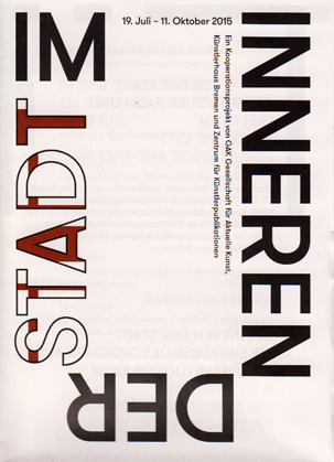 Das Künstlerhaus Bremen fokussiert mit Im Inneren der Stadt. Einflüsse des Digitalen auf den öffentlichen Raum, wie der digitale Raum eine neue Realität des öffentlichen Raums produziert. Und das Zentrum für Künstlerpublikationen präsentiert mit Im Inneren der Stadt. Künstlerpublikationen als Kunst im öffentlichen Raum Kunst seit den 1960er Jahren mit den Möglichkeiten und Medien der Öffentlichkeit