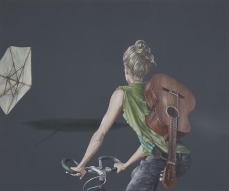 Das Motiv zur Ausstellung: „Das Mädchen mit der Gitarre”, Acryl und Öl auf Leinwand, 100 x 120 cm, 2018